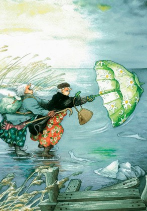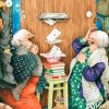 Vykorten med Inge Lööks motiv av damer fångar charmiga och nostalgiska stunder av trädgårdsarbete, fikastunder, pratstunder och blommor, perfekt för att dela glädje och värme.