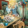 Vykorten med Inge Lööks motiv av damer fångar charmiga och nostalgiska stunder av trädgårdsarbete, fikastunder, pratstunder och blommor, perfekt för att dela glädje och värme.