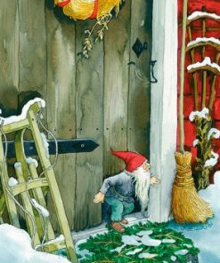 Vykorten med Inge Lööks julmotiv fångar den festliga och hjärtliga atmosfären av julen, med glädje, traditioner och vinterlandskap, perfekt för att sprida julstämning och värme.