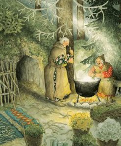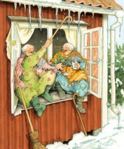 Vykorten med Inge Lööks motiv av damer fångar charmiga och nostalgiska stunder av trädgårdsarbete, fikastunder, pratstunder och blommor, perfekt för att dela glädje och värme.