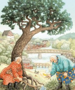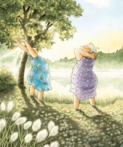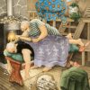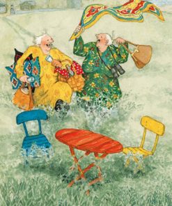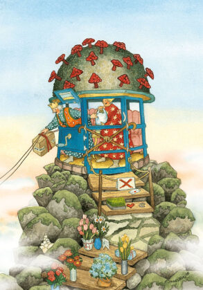 Vykorten med Inge Lööks motiv av damer fångar charmiga och nostalgiska stunder av trädgårdsarbete, fikastunder, pratstunder och blommor, perfekt för att dela glädje och värme.